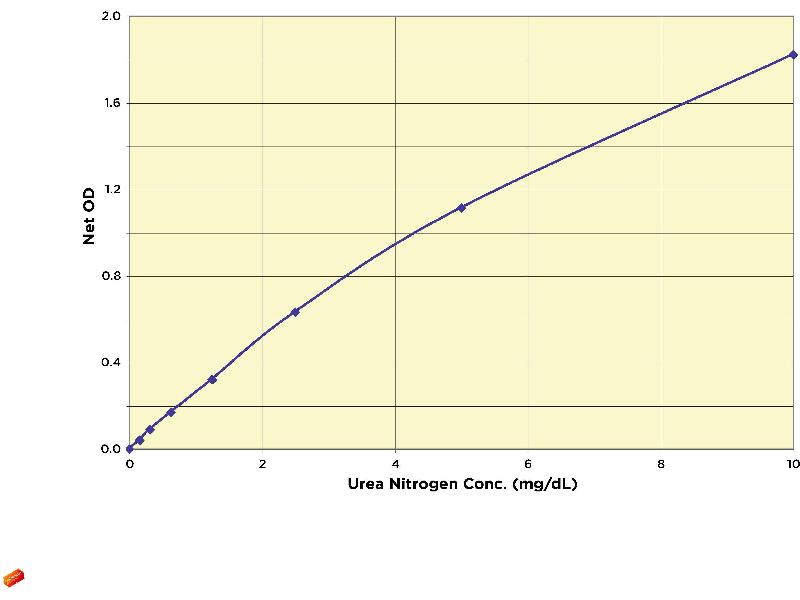 A urea nitrogen standard calibrated to NIST reference materials is provided to generate a standard curve for the assay and all samples should be read off the standard curve.