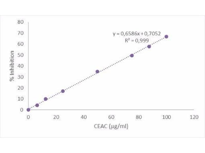 1.Calculate the absorbance at 553 nm as percentage of the absorbance of the uninhibited radical cation solution (Blank) according to the equation: Inhibition of A553 (%) = (1-Af/A0) x 100 Where A0 is the absorbance of uninhibited radical cation and Af is the absorbance measured 10 min after the addition of antioxidant samples. 2. Plot the inhibition of standards as a function of their final concentrations (Table 1 in book let). See Figure 2 for a typical standard curve ( see images). 3.Calculate the CEAC value of the samples using the equation obtained from the linear regression of the standard curve substituted inhibition percentage values for each sample.CEAC (μg/ ml) = (sample inhibition A553- intercept)/slope