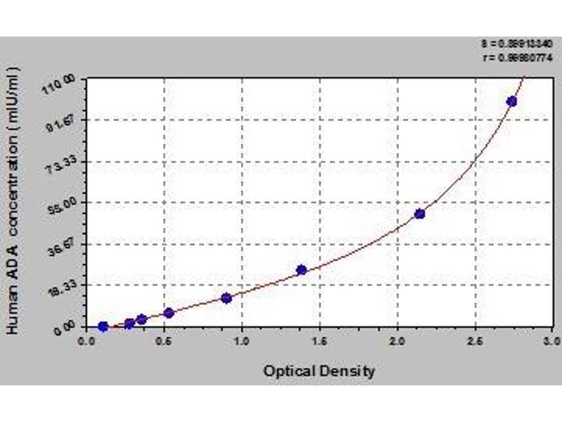 - This assay employs the quantitative sandwich enzyme immunoassay technique. Antibody specific for ADA has been pre-coated onto a microplate. Standards and samples are pipetted into the wells and any ADA present is bound by the immobilized antibody. After removing any unbound substances, a biotin-conjugated antibody specific for ADA is added to the wells. After washing, avidin conjugated Horseradish Peroxidase (HRP) is added to the wells. Following a wash to remove any unbound avidin-enzyme reagent, a substrate solution is added to the wells and color develops in proportion to the amount of ADA bound in the initial step. The color development is stopped and the intensity of the color is measured.