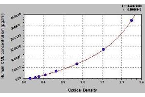 - This assay employs the quantitative sandwich enzyme immunoassay technique. Antibody specific for CML has been pre-coated onto a microplate. Standards and samples are pipetted into the wells and any CML present is bound by the immobilized antibody. After removing any unbound substances, a biotin-conjugated antibody specific for CML is added to the wells. After washing, avidin conjugated Horseradish Peroxidase (HRP) is added to the wells. Following a wash to remove any unbound avidin-enzyme reagent, a substrate solution is added to the wells and color develops in proportion to the amount of CML bound in the initial step. The color development is stopped and the intensity of the color is measured.