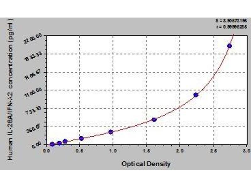 - This assay employs the quantitative sandwich enzyme immunoassay technique. Antibody specific for IL-28A/IFN-lambda2 has been pre-coated onto a microplate. Standards and samples are pipetted into the wells and any IL-28A/IFN-lambda2 present is bound by the immobilized antibody. After removing any unbound substances, a biotin-conjugated antibody specific for IL-28A/IFN-lambda2 is added to the wells. After washing, avidin conjugated Horseradish Peroxidase (HRP) is added to the wells. Following a wash to remove any unbound avidin-enzyme reagent, a substrate solution is added to the wells and color develops in proportion to the amount of IL-28A/IFN-lambda2 bound in the initial step. The color development is stopped and the intensity of the color is measured.