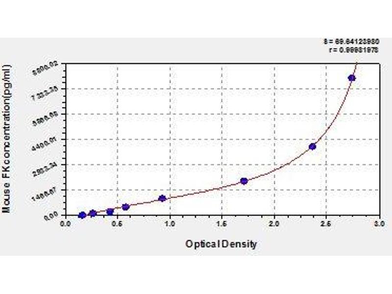 Create a standard curve by reducing the data using computer software capable of generating a four parameter logistic (4-PL) curve fit. As an alternative, construct a standard curve by plotting the mean absorbance for each standard on the x-axis against the concentration on the y-axis and draw a best fit curve through the points on the graph. The data may be linearized by plotting the log of the target antigen concentration versus the log of the O.D. and the best fit line can be determined by regression analysis. This procedure will produce an adequate but less precise fit of the data.