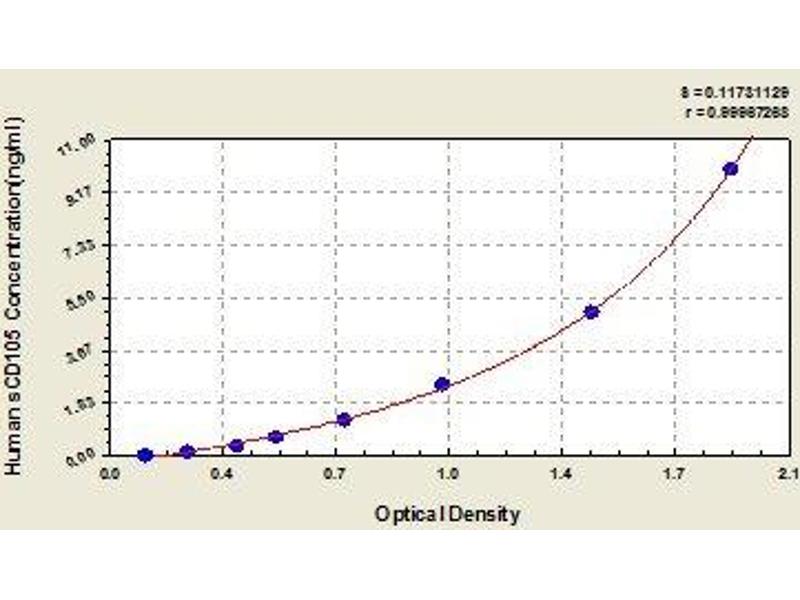 - The CurveExpert Analyze feature was used to calculate human CD105 concentrations of the samples based on their Average Absorbance values.