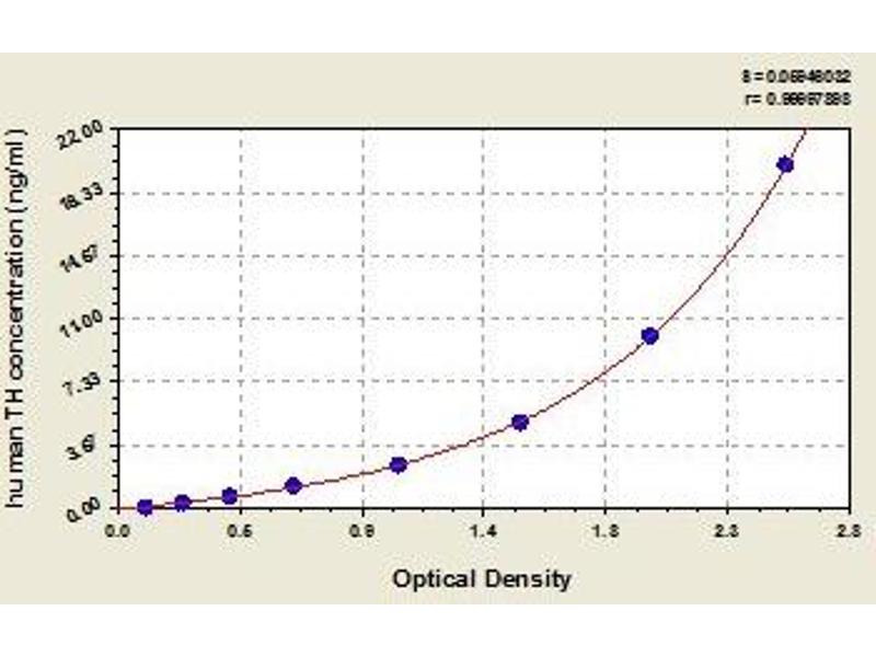 - Antibody specific for TH has been pre-coated onto a microplate. Standards and samples are pipetted into the wells and any TH present is bound by the immobilized antibody. After removing any unbound substances, a biotin-conjugated antibody specific for TH is added to the wells. After washing, avidin conjugated Horseradish Peroxidase (HRP) is added to the wells. Following a wash to remove any unbound avidin-enzyme reagent, a substrate solution is added to the wells and color develops in proportion to the amount of TH bound in the initial step. The color development is stopped and the intensity of the color is measured.