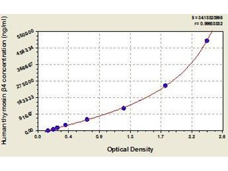 - This assay employs the quantitative sandwich enzyme immunoassay technique. Antibody specific for thymosin beta4 has been pre-coated onto a microplate. Standards and samples are pipetted into the wells and any thymosin beta4 present is bound by the immobilized antibody. After removing any unbound substances, a biotin-conjugated antibody specific for thymosin beta4 is added to the wells. After washing, avidin conjugated Horseradish Peroxidase (HRP) is added to the wells. Following a wash to remove any unbound avidin-enzyme reagent, a substrate solution is added to the wells and color develops in proportion to the amount of thymosin beta4 bound in the initial step. The color development is stopped and the intensity of the color is measured.