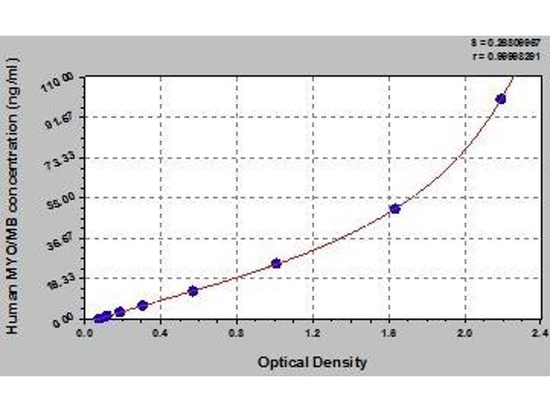 - This assay employs the quantitative sandwich enzyme immunoassay technique. Antibody specific for MYO/MB has been pre-coated onto a microplate. Standards and samples are pipetted into the wells and any MYO/MB present is bound by the immobilized antibody. After removing any unbound substances, a biotin-conjugated antibody specific for MYO/MB is added to the wells. After washing, avidin conjugated Horseradish Peroxidase (HRP) is added to the wells. Following a wash to remove any unbound avidin-enzyme reagent, a substrate solution is added to the wells and color develops in proportion to the amount of MYO/MB bound in the initial step. The color development is stopped and the intensity of the color is measured.