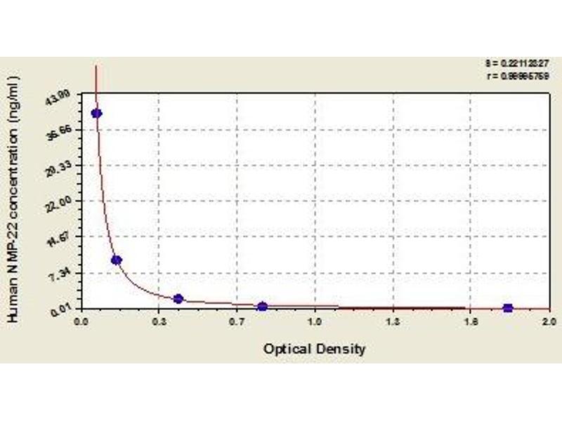 - This assay employs the competitive inhibition enzyme immunoassay technique. Antibody specific for NMP-22 has been pre-coated onto a microplate. Standards and samples are pipetted into the wells with a Horseradish Peroxidase (HRP) conjugated NMP-22. A competitive inhibition reaction is launched between NMP-22 (Standards or samples) and HRP-conjugated NMP-22 with the pre-coated antibody specific for NMP-22. The more amount of NMP-22 in samples, the less antibody bound by HRP-conjugated NMP-22. Following a wash to remove any unbound reagent, a substrate solution is added to the wells and color develops in opposite to the amount of NMP-22 in the sample. The color development is stopped and the intensity of the color is measured.
