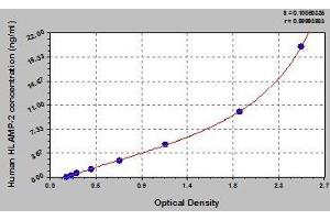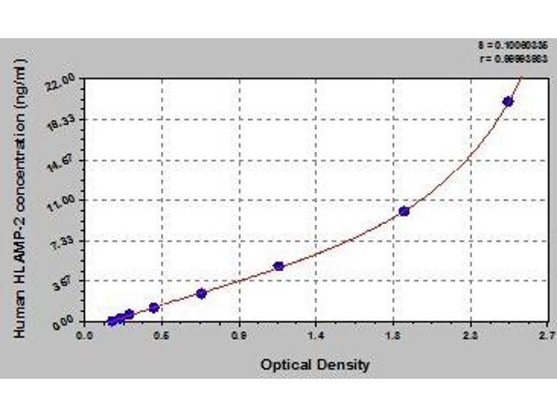 - This assay employs the quantitative sandwich enzyme immunoassay technique. Antibody specific for HLAMP-2 has been pre-coated onto a microplate. Standards and samples are pipetted into the wells and any HLAMP-2 present is bound by the immobilized antibody. After removing any unbound substances, a biotin-conjugated antibody specific for HLAMP-2 is added to the wells. After washing, avidin conjugated Horseradish Peroxidase (HRP) is added to the wells. Following a wash to remove any unbound avidin-enzyme reagent, a substrate solution is added to the wells and color develops in proportion to the amount of HLAMP-2 bound in the initial step. The color development is stopped and the intensity of the color is measured.