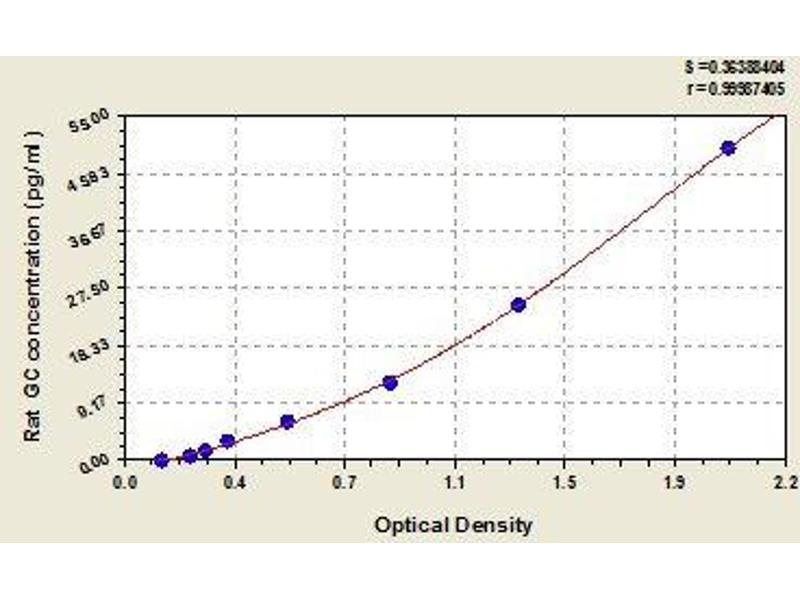 This assay employs the quantitative sandwich enzyme immunoassay technique. Antibody specific for GC has been pre-coated onto a microplate. Standards and samples are pipetted into the wells and any GC present is bound by the immobilized antibody. After removing any unbound substances, a biotin-conjugated antibody specific for GC is added to the wells. After washing, avidin conjugated Horseradish Peroxidase (HRP) is added to the wells. Following a wash to remove any unbound avidin-enzyme reagent, a substrate solution is added to the wells and color develops in proportion to the amount of GC bound in the initial step. The color development is stopped and the intensity of the color is measured.