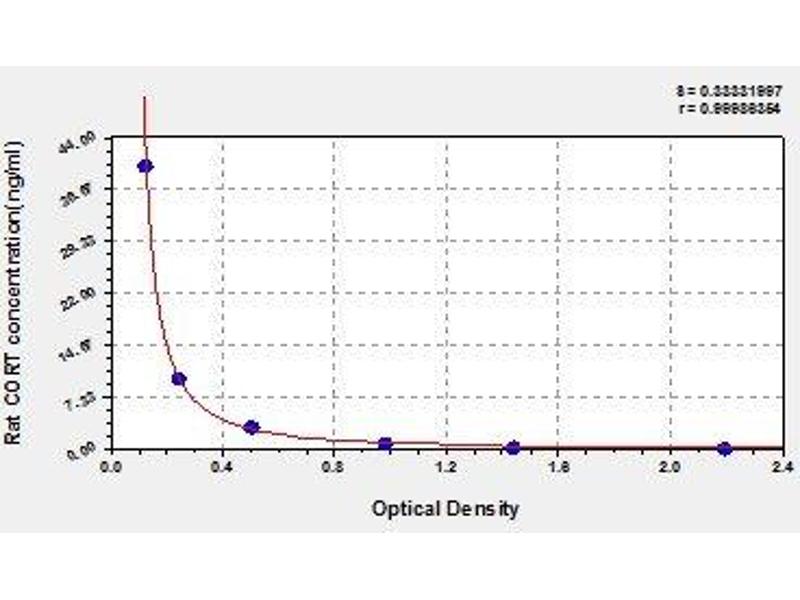 - This assay employs the competitive inhibition enzyme immunoassay technique. The microtiter plate provided in this kit has been pre-coated with goat-anti-rabbit antibody. Standards or samples are added to the appropriate microtiter plate wells with an antibody specific for CORT and Horseradish Peroxidase (HRP) conjugated CORT. The competitive inhibition reaction is launched between with HRP labeled CORT and unlabeled CORT with the antibody. A substrate solution is added to the wells and the color develops in opposite to the amount of CORT in the sample. The color development is stopped and the intensity of the color is measured.