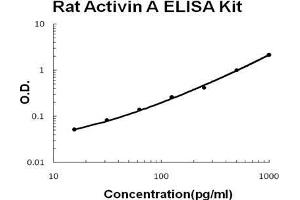- rat Activin A ELISA Kit was based on standard sandwich enzyme-linked immune-sorbent assay technology. A monoclonal antibody from mouse specific for Activin A has been precoated onto 96-well plates. Standards(CHO, G311-S426) and test samples are added to the wells, a biotinylated detection monoclonal antibody from mouse specific for Activin A is added subsequently and then followed by washing with PBS or TBS buffer. Avidin-Biotin-Peroxidase Complex was added and unbound conjugates were washed away with PBS or TBS buffer. HRP substrate TMB was used to visualize HRP enzymatic reaction. TMB was catalyzed by HRP to produce a blue color product that changed into yellow after adding acidic stop solution. The density of yellow is proportional to the rat Activin A amount of sample captured in plate.