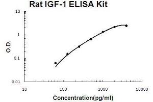 - rat IGF-1 ELISA Kit was based on standard sandwich enzyme-linked immune-sorbent assay technology. A monoclonal antibody from mouse specific for IGF-1 has been precoated onto 96-well plates. Standards(E.coli, G49-A118) and test samples are added to the wells, a biotinylated detection polyclonal antibody from goat specific for IGF-1is added subsequently and then followed by washing with PBS or TBS buffer. Avidin-Biotin-Peroxidase Complex was added and unbound conjugates were washed away with PBS or TBS buffer. HRP substrate TMB was used to visualize HRP enzymatic reaction. TMB was catalyzed by HRP to produce a blue color product that changed into yellow after adding acidic stop solution. The density of yellow is proportional to the rat IGF-1 amount of sample captured in plate.