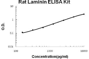 - rat Laminin ELISA Kit was based on standard sandwich enzyme-linked immune-sorbent assay technology. A monoclonal antibody from mouse specific for Laminin has been precoated onto 96-well plates. Standards(from rat sarcoma basement membrane) and test samples are added to the wells, a biotinylated detection polyclonal antibody from goat specific for Laminin is added subsequently and then followed by washing with PBS or TBS buffer. Avidin-Biotin-Peroxidase Complex was added and unbound conjugates were washed away with PBS or TBS buffer. HRP substrate TMB was used to visualize HRP enzymatic reaction. TMB was catalyzed by HRP to produce a blue color product that changed into yellow after adding acidic stop solution. The density of yellow is proportional to the rat Laminin amount of sample captured in plate.