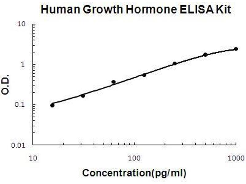 - human GH ELISA Kit was based on standard sandwich enzyme-linked immune-sorbent assay technology. A monoclonal antibody from mouse specific for GH has been precoated onto 96-well plates. Standards(E.coli, F27-F217) and test samples are added to the wells, a biotinylated detection polyclonal antibody from goat specific for GH is added subsequently and then followed by washing with PBS or TBS buffer. Avidin-Biotin-Peroxidase Complex was added and unbound conjugates were washed away with PBS or TBS buffer. HRP substrate TMB was used to visualize HRP enzymatic reaction. TMB was catalyzed by HRP to produce a blue color product that changed into yellow after adding acidic stop solution. The density of yellow is proportional to the human GH amount of sample captured in plate.