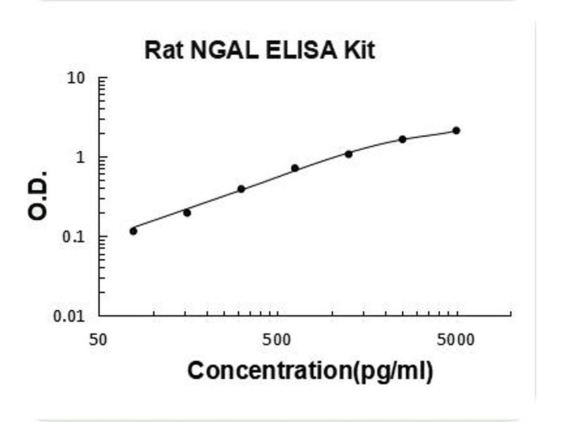 Background: Lipocalin-2(LCN2), also known as NGAL, is a protein associated with neutrophil gelatinase.1 The LCN2 gene is located at 9q34 and contains 7 exons.2 The 25-kD LCN2 protein is believed to bind small lipophilic substances such as bacteria-derived lipopolysaccharide(LPS) and formylpeptides and may function as a modulator of inflammation. NGAL tightly binds bacterial catecholate-type ferric siderophores through a cyclically permuted, hybrid electrostatic/cation-pi interaction and is a potent bacteriostatic agent in iron-limiting conditions.3 The primary LCN2 transcript is 3,696 nucleotides long, and the processed transcript is 809 nucleotides long.4 LCN2 expression in adult bone marrow, uterus, prostate, salivary gland, stomach, appendix, colon, trachea, and lung, and in fetal spleen and lung. The standard product used in this kit is recombinant rat NGAL, consisting of 177 amino acids with the molecular mass of 21 kDa.