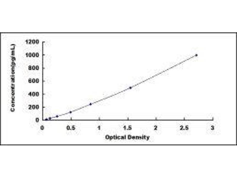 2. Standard - Reconstitute the Standard with 1.0 mL of Standard Diluent, keep for 10 minutes at room temperature, shake gently (not to foam). The concentration of the standard in the stock solution is 1,000pg/mL. Prepare 7 tubes containing 0.5 mL Standard Diluent and produce a double dilution series. Mix each tube thoroughly before the next transfer. Set up 7 points of diluted standard such as 1,000pg/mL, 500pg/mL, 250pg/mL, 125pg/mL, 62.5pg/mL, 31.2pg/mL, 15.6pg/mL, and the last microcentrifuge tube with Standard Diluent is the blank as 0pg/mL.