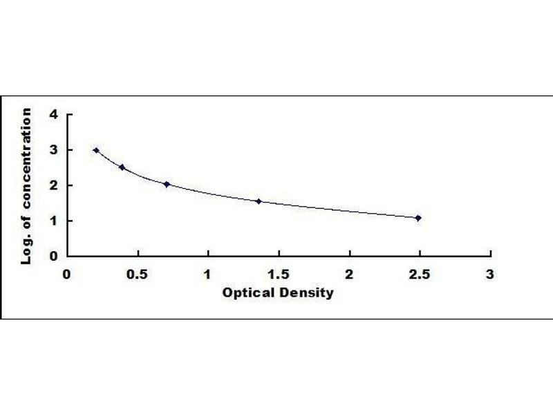 In order to make the calculation easier, we plot the O.D. value of the standard (X-axis) against the log of concentration of the standard (Y-axis), although concentration is the independent variable and O.D. value is the dependent variable. The O.D. values of the standard curve may vary according to the conditions of assay performance (e.g. operator, pipetting technique, washing technique or temperature effects). Typical standard curve below is provided for reference only. -