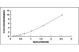 In order to make the calculation easier, we plot the O.D. value of the standard (X-axis) against the known concentration of the standard (Y-axis), although concentration is indeed the independent variable while O.D. value is the dependent variable. Further, in this part, in order to help the customer perform the assay more visual, we provide the customer with the raw data (not the log of data). However, plotting log of the data to construct the curve will be recommended. The O.D. values of the standard curve may vary according to the conditions of assay performance (e.g. operator, pipetting technique, washing technique or temperature effects). This curve is provided for demonstration only. The customers should establish their own standard curve for each test conducted. -