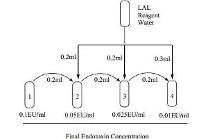 Prepare 1EU/mL endotoxin solution before making standard serial dilutions. For example, if the endotoxin stock solution is 5 EU/mL, dilute 0.2 mL of 5 EU/mL endotoxin stock solution with 0.8 mL of LAL Reagent Water to make the 1 EU/mL solution.