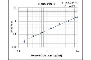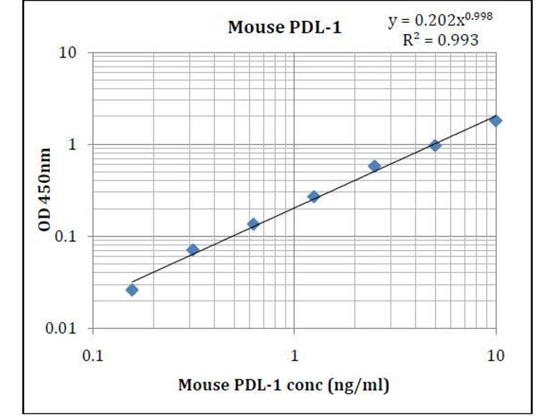 - This kit was based on sandwich enzyme-linked immune-sorbent assay technology. Anti- Mouse PDL-1 antibody was pre-coated into 96-well plates. Biotin conjugated anti-MousePDL-1detection antibody was used. Standards, test samples and biotin conjugated detection antibody were added to the wells subsequently. Wash buffer was used to wash any non-specific binding. HRP conjugated Streptavidin was used as secondary antibody. TMB substrates were used to visualize HRP enzymatic reaction. TMB was catalyzed by HRP to produce a blue color product that changed into yellow after adding acidic stop solution. The density of yellow is proportional to the Mouse PDL-1 amount of samples captured in the plate. Optical Density (O.D) can be read at absorbance 450nm in a microplate reader. Concentration of Mouse PDL-1 can be calculated using the standard curve.
