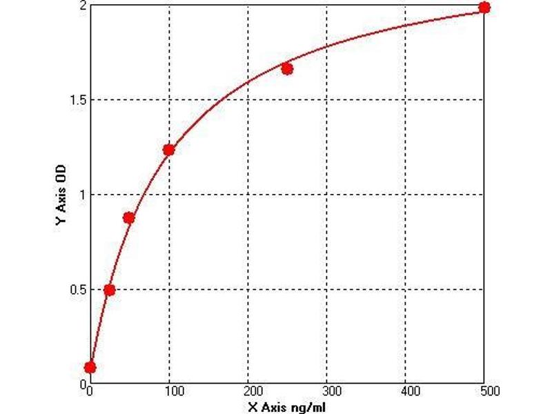 Prepare all Standards before starting assay procedure (Please read Reagents Preparation). It is recommended that all Standards and Samples be added in duplicate to the Microtiter Plate. 1. Secure the desired number of coated wells in the holder then add 50 µL of Standards or Samples to the appropriate well of the antibody pre-coated Microtiter Plate. 2. Add 50 μL of Conjugate to each well. Mix well. Complete mixing in this step is important. Cover and incubate for 1 hour at 37 °C. 3. Wash the Microtiter Plate using one of the specified methods indicated below: 4. Manual Washing: Remove incubation mixture by aspirating contents of the plate into a sink or proper waste container. Using a squirt bottle, fill each well completely with wash solution, then aspirate contents of the plate into a sink or proper waste container. Repeat this procedure four more times for a total of FIVE washes. After final wash, invert plate, and blot dry by hitting plate onto absorbent paper or paper towels until no moisture appears. Note: Hold the sides of the plate frame firmly hen washing the plate to assure that all strips remain securely in frame. 5. Automated Washing: Aspirate all wells, and then wash plate FIVE times using wash solution. Always adjust your washer to aspirate as much liquid as possible and set fill volume at 350 µL/well/wash (range: 350-400 µL). After final wash, invert plate, and blot dry by hitting plate onto absorbent paper or paper towels until no moisture appears. It is recommended that the washer be set for a soaking time of 10 seconds or shaking time of 5 seconds between washes. 6. Add 50 µL Substrate A to each well. 7.Add 50 µL Substrate B to each well. Cover and incubate for 15 minutes at 20-25 °C. (avoid sunlight) 8. Add 50 µL of Stop Solution to each well. Mix well. 9. Read the Optical Density (O.D.) at 450 nm using a microtiter plate reader immediately.