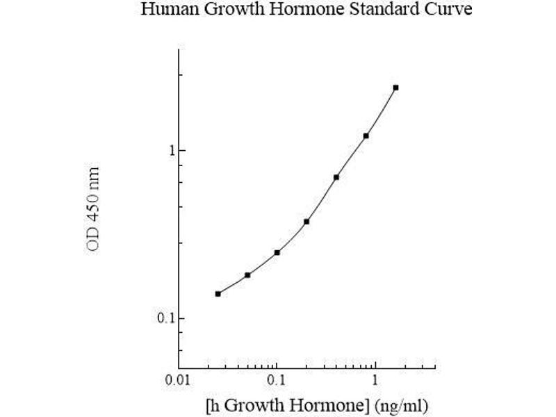 - The AssayMax™ Human Growth Hormone (GH) ELISA (Enzyme-Linked Immunosorbent Assay) kit is designed for detection of human GH in plasma, serum, and cell culture samples. This assay employs a quantitative sandwich enzyme immunoassay technique that measures human GH in approximately 4 hours. A polyclonal antibody specific for human GH has been pre-coated onto a 96-well microplate with removable strips. GH in standards and samples is sandwiched by the immobilized antibody and a biotinylated polyclonal antibody specific for human GH, which is recognized by a streptavidin- peroxidase conjugate. All unbound material is washed away and a peroxidase enzyme substrate is added. The color development is stopped and the intensity of the color is measured.