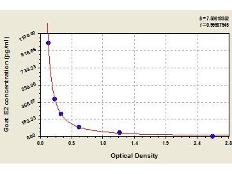 This assay employs the competitive inhibition enzyme immunoassay technique. The microtiter plate provided in this kit has been pre-coated with goat-anti-rabbit antibody. Standards or samples are added to the appropriate microtiter plate wells with an antibody specific for E2 and Horseradish Peroxidase (HRP) conjugated E2. The competitive inhibition reaction is launched between with HRP labeled E2 and unlabeled E2 with the antibody. A substrate solution is added to the wells and the color develops in opposite to the amount of E2 in the sample. The color development is stopped and the intensity of the color is measured.