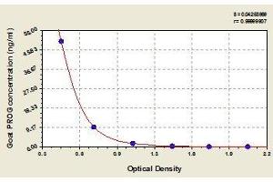 - This assay employs the competitive enzyme immunoassay technique. The microtiter plate provided in this kit has been pre-coated with goat-anti-rabbit antibody. Standards or samples are added to the appropriate microtiter plate wells with an antibody specific for PROG and Horseradish Peroxidase (HRP) conjugated PROG. The competitive inhibition reaction is launched between with HRP labeled PROG and unlabeled PROG with the antibody. A substrate solution is added to the wells and the color develops in opposite to the amount of PROG in the sample. The color development is stopped and the intensity of the color is measured.