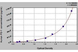- This assay employs the quantitative sandwich enzyme immunoassay technique. Antibody specific for PD-1 has been pre-coated onto a microplate. Standards and samples are pipetted into the wells and any PD-1 present is bound by the immobilized antibody. After removing any unbound substances, a biotin-conjugated antibody specific for PD-1 is added to the wells. After washing, avidin conjugated Horseradish Peroxidase (HRP) is added to the wells. Following a wash to remove any unbound avidin-enzyme reagent, a substrate solution is added to the wells and color develops in proportion to the amount of PD-1 bound in the initial step. The color development is stopped and the intensity of the color is measured.
