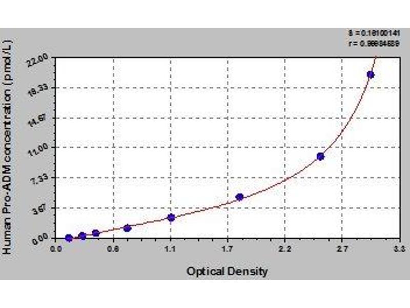 - This assay employs the quantitative sandwich enzyme immunoassay technique. Antibody specific for Pro-ADM has been pre-coated onto a microplate. Standards and samples are pipetted into the wells and any Pro-ADM present is bound by the immobilized antibody. After removing any unbound substances, a biotin-conjugated antibody specific for Pro-ADM is added to the wells. After washing, avidin conjugated Horseradish Peroxidase (HRP) is added to the wells. Following a wash to remove any unbound avidin-enzyme reagent, a substrate solution is added to the wells and color develops in proportion to the amount of Pro-ADM bound in the initial step. The color development is stopped and the intensity of the color is measured.