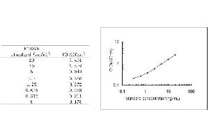 Average the duplicate readings for each standard, control, and sample and subtract the average zero standard optical density. Create a standard curve by reducing the data using computer software capable of generating a four parameter logistic (4-PL) curve-fit. As an alternative, construct a standard curve by plotting the mean absorbance for each standard on the x-axis against the concentration on the y-axis and draw a best fit curve through the points on the graph. The data may be linearized by plotting the log of the SAA concentrations versus the log of the O.D. and the best fit line can be determined by regression analysis. It is recommended to use some related software to do this calculation, such as curve expert 13.0. This procedure will produce an adequate but less precise fit of the data. If samples have been diluted, the concentration read from the standard curve must be multiplied by the dilution factor.