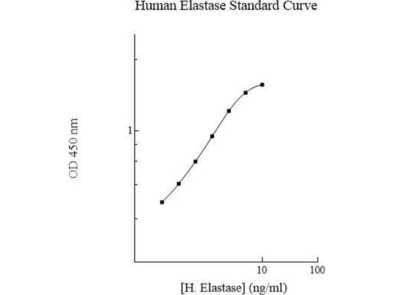 This assay employs a quantitative sandwich enzyme immunoassay technique that measures human Elastase in less than 4 hours. A polyclonal antibody specific for human Elastase has been pre-coated onto a 96-well microplate with removable strips. Elastase in standards and samples is sandwiched by the immobilized antibody and the biotinylated polyclonal antibody specific for Elastase, which is recognized by a streptavidin-peroxidase conjugate. All unbound material is then washed away and a peroxidase enzyme substrate is added. The color development is stopped and the intensity of the color is measured.