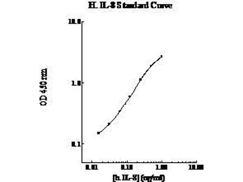 - This assay employs a quantitative sandwich enzyme immunoassay technique that measures IL-8 in less than 5 hours. A polyconal antibody specific for human IL-8 has been pre- coated onto a microplate. IL-8 in standards and samples is sandwiched by the immobilized antibody and a biotinylated polyclonal antibody specific for human IL-8, which is recognized by a streptavidin- peroxidase conjugate. All unbound material is then washed away and a peroxidase enzyme substrate is added. The color development is stopped and the intensity of the color is measured.