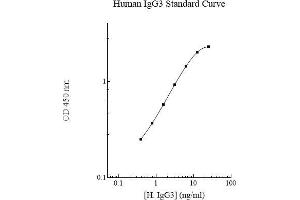 - This assay employs a quantitative sandwich enzyme immunoassay technique that measures human IgG3 in less than 4 hours. A polyclonal antibody specific for human IgG3 has been pre- coated onto a 96-well microplate with removable strips. IgG3 in standards and samples is sandwiched by the immobilized antibody and the biotinylated polyclonal antibody specific for IgG3, which is recognized by a streptavidin-peroxidase conjugate. All unbound material is then washed away and a peroxidase enzyme substrate is added. The color development is stopped and the intensity of the color is measured.