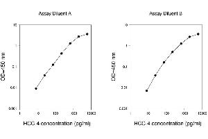 - The Human HCC-4 ELISA (Enzyme-Linked Immunosorbent Assay) kit is an in vitro enzyme-linked immunosorbent assay for the quantitative measurement of human HCC-4 in serum, plasma, cell culture supernatants and urine. This assay employs an antibody specific for human HCC-4 coated on a 96-well plate. Standards and samples are pipetted into the wells and HCC-4 present in a sample is bound to the wells by the immobilized antibody. The wells are washed and biotinylated anti-human HCC-4 antibody is added. After washing away unbound biotinylated antibody, HRP-conjugated streptavidin is pipetted to the wells. The wells are again washed, a TMB substrate solution is added to the wells and color develops in proportion to the amount of HCC-4 bound. The Stop Solution changes the color from blue to yellow, and the intensity of the color is measured at 450 nm. Reproducibility: Intra-Assay: CV<10% Inter-Assay: CV<12%.