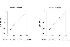 - IL-15 (Interleukin-15) is found in conditioned medium of a monkey kidney epithelial cell line, CV-1/EBNA. It is a glycoprotein of 14-15 kDa . Human IL-15 has been cloned from a human stromal cell line, IMTLH. Stromal cell line IL-15 has been shown to be produced by human fetal astrocytes and microglia in response to IL-1beta or IFN-gamma and may thus play a role in T-cell mediated immune responses in the human central nervous system. IL-15 is a recently identified novel cytokine that shares many biological properties with IL-2, including T-Cell, B-Cell and NK- cell-stimulatory activities. The Human IL-15 ELISA (Enzyme-Linked Immunosorbent Assay) kit is an in vitro enzyme-linked immunosorbent assay for the quantitative measurement of human IL-15 in serum, plasma (collect plasma using EDTA or heparin as an anticoagulant. Citrate plasma is not recommended for use in this assay), cell culture supernatants and urine. This assay employs an antibody specific for human IL-15 coated on a 96-well plate. Standards and samples are pipetted into the wells and IL-15 present in a sample is bound to the wells by the immobilized antibody. The wells are washed and biotinylated anti-human IL-15 antibody is added. After washing away unbound biotinylated antibody, HRP-conjugated streptavidin is pipetted to the wells. The wells are again washed, a TMB substrate solution is added to the wells and color develops in proportion to the amount of IL-15 bound. The Stop Solution changes the color from blue to yellow, and the intensity of the color is measured at 450 nm. Reproducibility: Intra-Assay: CV<10% Inter-Assay: CV<12%.