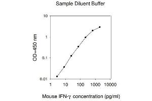 Typical Data: These standard curves are for demonstration only. A standard curve must be run with each assay. Sample Diluent Buffer Mouse IFN-gamma concentration (pg/mL) 1 10 100 1000 10000 O D =4 50 n m 0.01 0.1 1 10