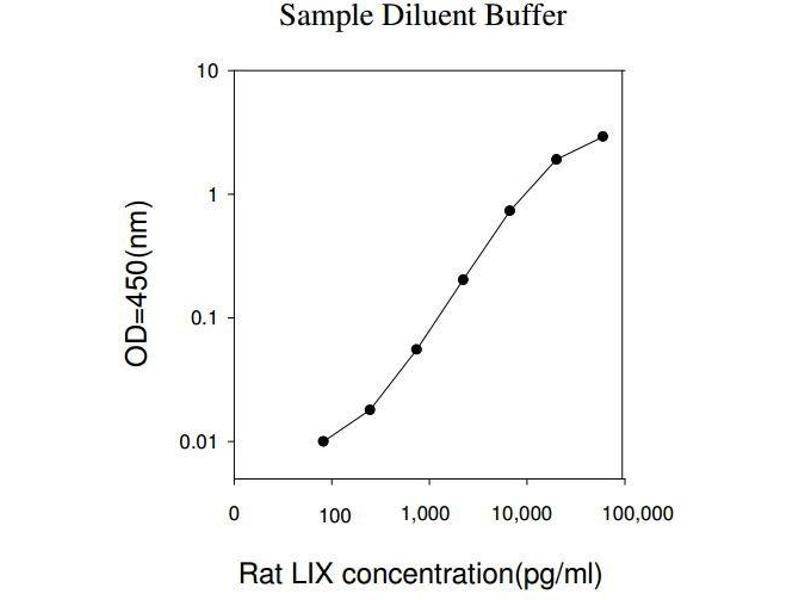Recovery: Recovery was determined by spiking various levels of rat LIX into tissue lysate and cell lysate. Mean recoveries are as follows: Sample Type Average % Recovery Range ( %) Tissue lysate 93.47 84-103 Cell lysate 91.25 82-102