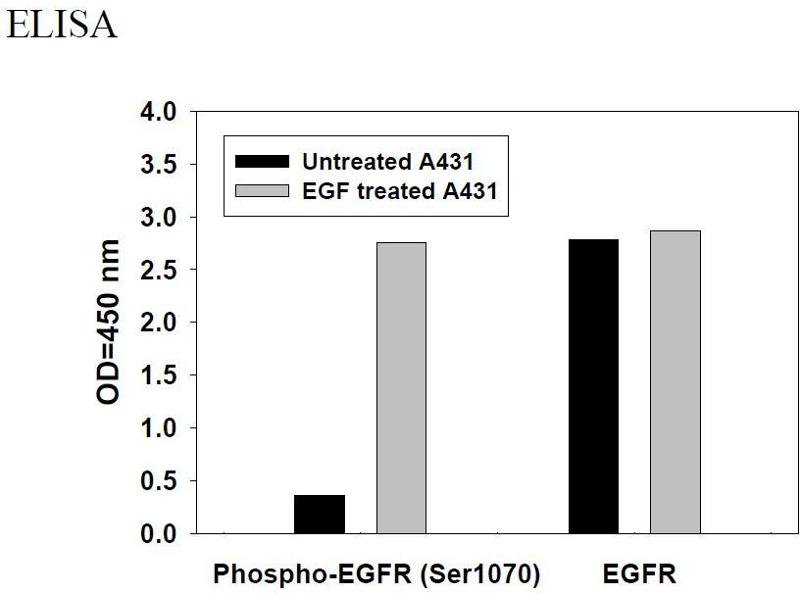 - Human Phospho-EGFR (S1070) ELISA Kit. This assay semi-quantitatively measures phophorylated EGFR (Ser1070) in lysate samples.