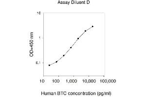 Recovery: Recovery was determined by spiking various levels of BTC into normal human serum, plasma and cell culture media. Mean recoveries are as follows: Sample Type Average % Recovery Range ( %) Serum 96.23 87-105 Plasma 78.86 67-88 Cell culture media 74.34 65-85