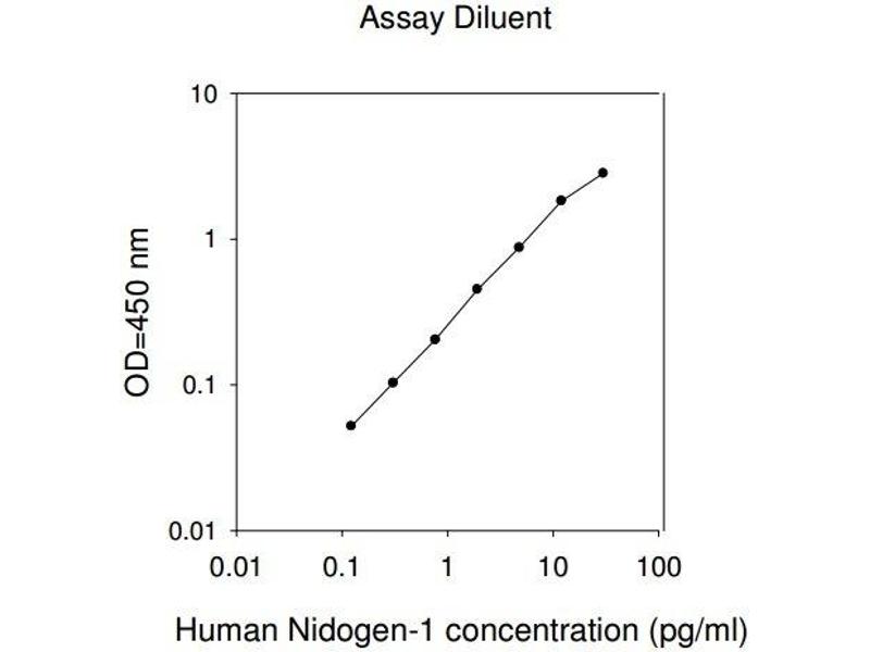 - The Human Nidogen-1 ELISA (Enzyme-Linked Immunosorbent Assay) kit is an in vitro enzyme-linked immunosorbent assay for the quantitative measurement of human Nidogen-1 in serum, plasma, cell culture supernatants and urine. This assay employs an antibody specific for human Nidogen-1 coated on a 96-well plate. Standards and samples are pipetted into the wells and Nidogen-1 present in a sample is bound to the wells by the immobilized antibody. The wells are washed and biotinylated anti-human Nidogen-1 antibody is added. After washing away unbound biotinylated antibody, HRP-conjugated streptavidin is pipetted to the wells. The wells are again washed, a TMB substrate solution is added to the wells and color develops in proportion to the amount of Nidogen-1 bound. The Stop Solution changes the color from blue to yellow, and the intensity of the color is measured at 450 nm. Reproducibility: Intra-Assay: CV<10% Inter-Assay: CV<12%.