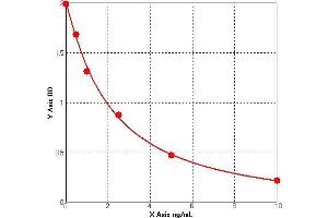 Prepare all Standards before starting assay procedure (Please read Reagents Preparation). It is recommended that all Standards and Samples be added in duplicate to the Microtiter Plate. 1. Secure the desired number of coated wells in the holder then add 50 µL of Standards or Samples to the appropriate well of the antibody pre-coated Microtiter Plate. 2. Add 50 μL of Conjugate to each well. Mix well. Complete mixing in this step is important. Cover and incubate for 1 hour at 37 °C. 3. Wash the Microtiter Plate using one of the specified methods indicated below: 4. Manual Washing: Remove incubation mixture by aspirating contents of the plate into a sink or proper waste container. Using a squirt bottle, fill each well completely with wash solution, then aspirate contents of the plate into a sink or proper waste container. Repeat this procedure four more times for a total of FIVE washes. After final wash, invert plate, and blot dry by hitting plate onto absorbent paper or paper towels until no moisture appears. Note: Hold the sides of the plate frame firmly hen washing the plate to assure that all strips remain securely in frame. 5. Automated Washing: Aspirate all wells, and then wash plate FIVE times using wash solution. Always adjust your washer to aspirate as much liquid as possible and set fill volume at 350 µL/well/wash (range: 350-400 µL). After final wash, invert plate, and blot dry by hitting plate onto absorbent paper or paper towels until no moisture appears. It is recommended that the washer be set for a soaking time of 10 seconds or shaking time of 5 seconds between washes. 6. Add 50 µL Substrate A to each well. 7.Add 50 µL Substrate B to each well. Cover and incubate for 15 minutes at 20-25 °C. (avoid sunlight) 8. Add 50 µL of Stop Solution to each well. Mix well. 9. Read the Optical Density (O.D.) at 450 nm using a microtiter plate reader immediately.