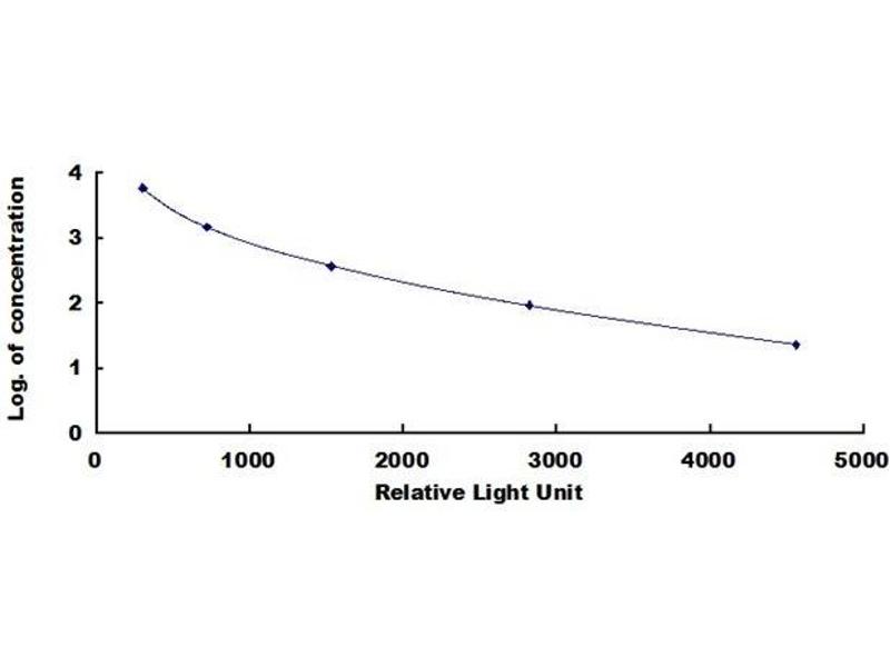 This assay employs the competitive inhibition enzyme immunoassay technique, so there is an inverse correlation between target concentration in the sample and the assay signal intensity. Average the duplicate readings for each standard, control, and samples. Create a standard curve on log-log graph paper, with the log of target concentration on the y-axis and the relative light unit (RLU) value on the x-axis. Draw the best fit straight line through the standard points and it can be determined by regression analysis. Using some plot software, such as curve expert 1.30, is also recommended. If samples have been diluted, the concentration read from the standard curve must be multiplied by the dilution factor.