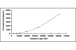 In order to make the calculation easier, we plot the RLU value of the standard (X-axis) against the known concentration of the standard (Y-axis), although concentration is indeed the independent variable while RLU value is the dependent variable. Further, in this part, in order to help the customer perform the assay more visual, we provide the customer with the raw data (not the log of data). However, plotting log of the data to construct the curve will be recommended. The RLU values of the standard curve may vary according to the conditions of assay performance (e.g. operator, pipetting technique, washing technique or temperature effects). This curve is provided for demonstration only. The customers should establish their own standard curve for each test conducted. -