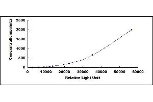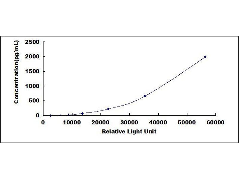 In order to make the calculation easier, we plot the RLU value of the standard (X-axis) against the known concentration of the standard (Y-axis), although concentration is indeed the independent variable while RLU value is the dependent variable. Further, in this part, in order to help the customer perform the assay more visual, we provide the customer with the raw data (not the log of data). However, plotting log of the data to construct the curve will be recommended. The RLU values of the standard curve may vary according to the conditions of assay performance (e.g. operator, pipetting technique, washing technique or temperature effects). This curve is provided for demonstration only. The customers should establish their own standard curve for each test conducted. -