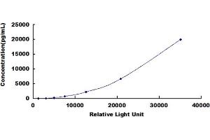 In order to make the calculation easier, we plot the RLU value of the standard (X-axis) against the known concentration of the standard (Y-axis), although concentration is indeed the independent variable while RLU value is the dependent variable. Further, in this part, in order to help the customer perform the assay more visual, we provide the customer with the raw data (not the log of data). However, plotting log of the data to construct the curve will be recommended. The RLU values of the standard curve may vary according to the conditions of assay performance (e.g. operator, pipetting technique, washing technique or temperature effects). This curve is provided for demonstration only. The customers should establish their own standard curve for each test conducted. -