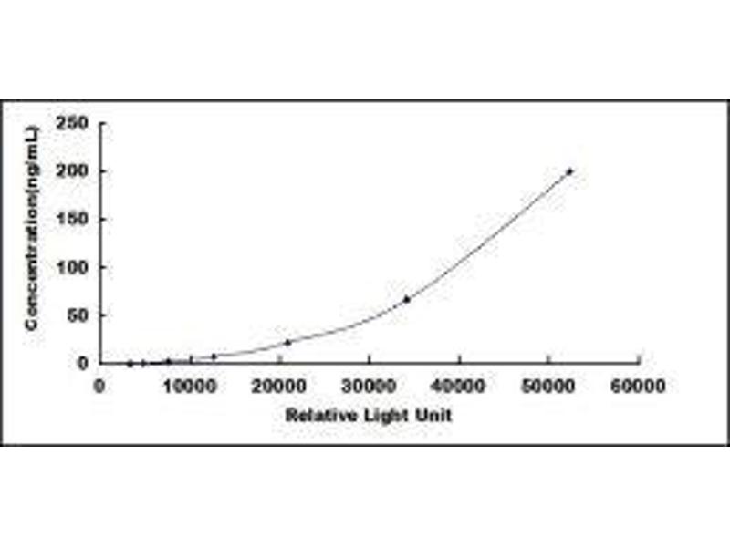 In order to make the calculation easier, we plot the RLU value of the standard (X-axis) against the known concentration of the standard (Y-axis), although concentration is indeed the independent variable while RLU value is the dependent variable. Further, in this part, in order to help the customer perform the assay more visual, we provide the customer with the raw data (not the log of data). However, plotting log of the data to construct the curve will be recommended. The RLU values of the standard curve may vary according to the conditions of assay performance (e.g. operator, pipetting technique, washing technique or temperature effects). This curve is provided for demonstration only. The customers should establish their own standard curve for each test conducted. -