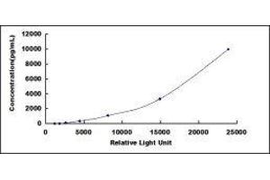In order to make the calculation easier, we plot the RLU value of the standard (X-axis) against the known concentration of the standard (Y-axis), although concentration is indeed the independent variable while RLU value is the dependent variable. Further, in this part, in order to help the customer perform the assay more visual, we provide the customer with the raw data (not the log of data). However, plotting log of the data to construct the curve will be recommended. The RLU values of the standard curve may vary according to the conditions of assay performance (e.g. operator, pipetting technique, washing technique or temperature effects). This curve is provided for demonstration only. The customers should establish their own standard curve for each test conducted. -