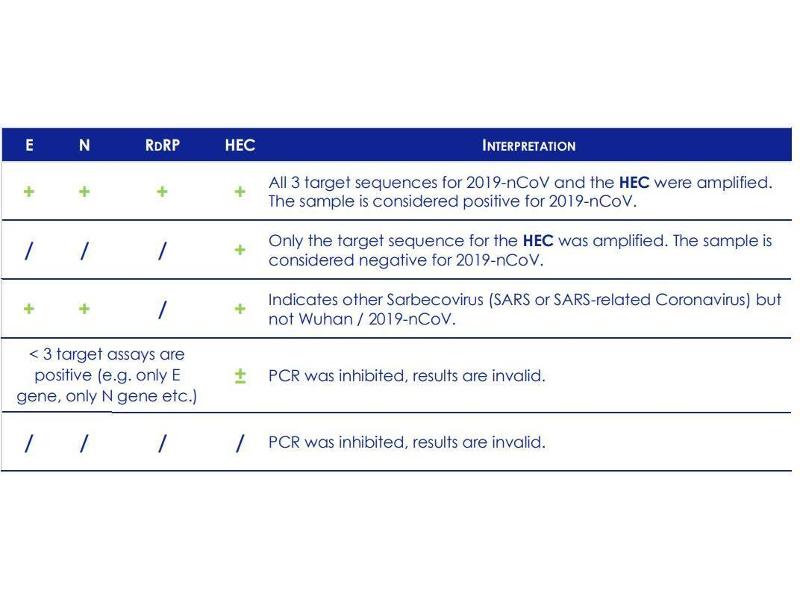 - For a sample to be considered negative for 2019-nCoV, none of the 2 assays (E / RdRP) must give positive Ct values. The HEC must give a positive Ct value (< 35 cycles) for these samples to ensure that sample material of suitable quality was present.