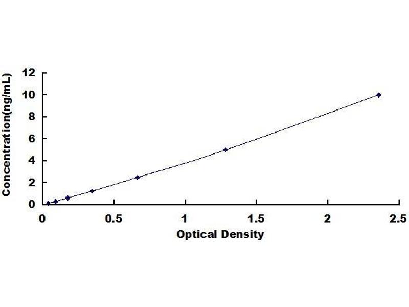 - Standard - Reconstitute the Standard with 1.0 mL of Standard Diluent, keep for 10 minutes at room temperature, shake gently (not to foam). The concentration of the standard in the stock solution is 100 ng/mL. Firstly dilute the stock solution to 10 ng/mL and the diluted standard serves as the highest standard (10 ng/mL). Then prepare 7 tubes containing 0.5 mL Standard Diluent and use the diluted standard to produce a double dilution series. Mix each tube thoroughly before the next transfer. Set up 7 points of diluted standard such as 10 ng/mL, 5 ng/mL, 2.5 ng/mL, 1.25 ng/mL, 0.625 ng/mL, 0.312 ng/mL, 0.156 ng/mL, and the last microcentrifuge tube with Standard Diluent is the blank as 0 ng/mL.